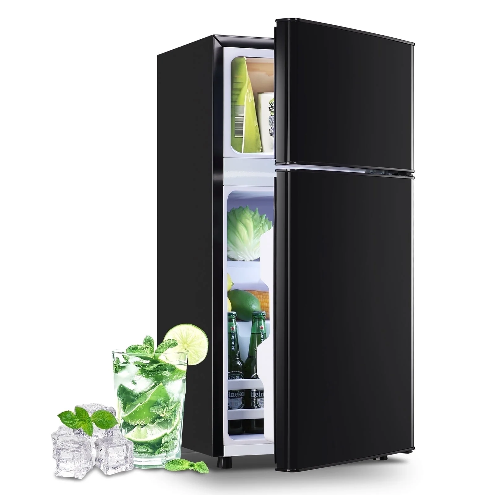 The Compact 2.4 Cu. ft. Mini Fridge with a built-in freezer and removable shelves offers efficient cooling and versatility in a compact size. Perfect for dorm rooms, offices, or small apartments, it keeps your food and drinks fresh without taking up much space.