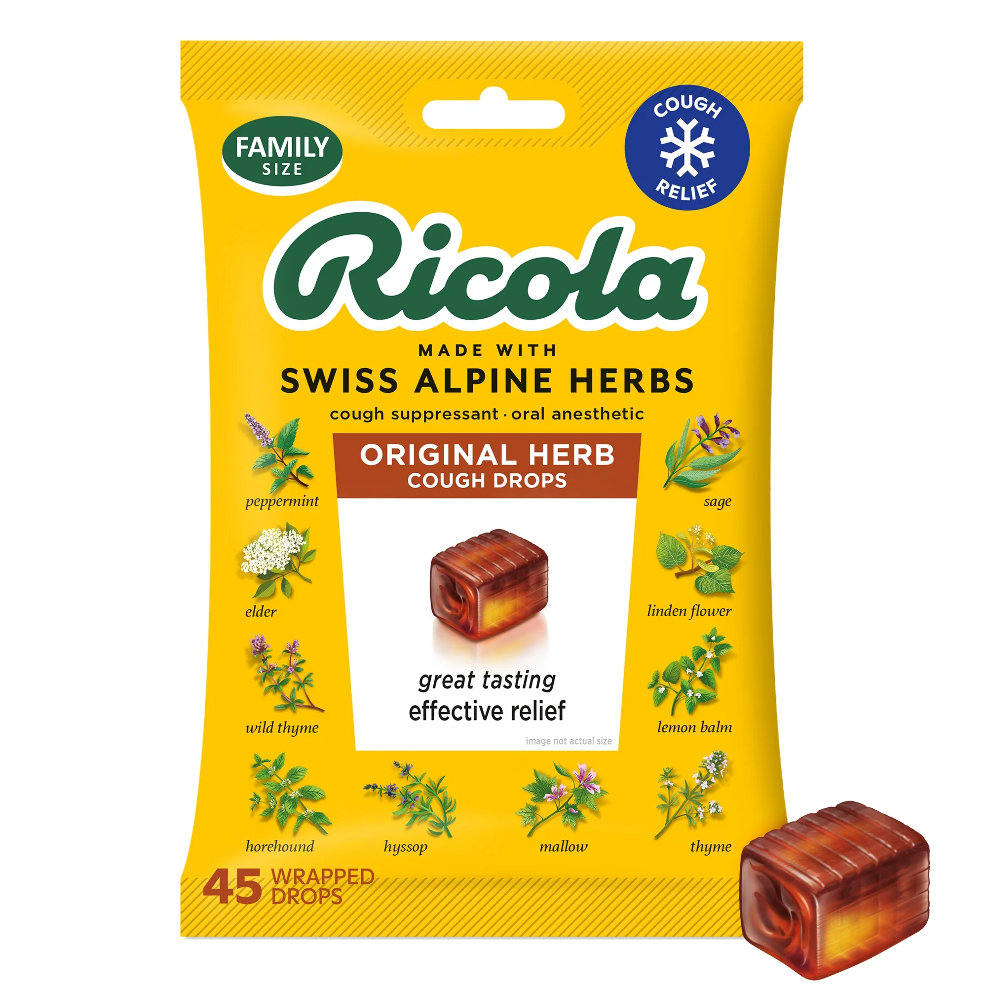 Ricola Original Herb Soothing Cough Drops combine the power of natural Swiss herbs to provide effective relief from sore throats and coughs. Each drop gently soothes irritation, calms coughing, and helps keep your throat comfortable. The value pack contains 45 individually wrapped drops, making it convenient for home, work, or travel. With a refreshing, natural herbal taste, Ricola cough drops offer fast, soothing relief while supporting throat comfort throughout the day, making them a trusted choice for cough and throat care.