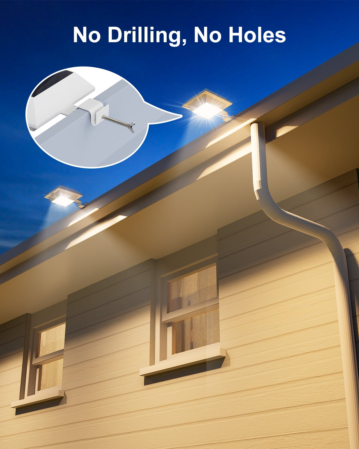 The 8-Pack Solar Gutter Lights feature 12 LED bulbs per unit, are waterproof, and perfect for outdoor lighting on bushes, plants, fences, railings, walls, and decks. Solar-powered and no-drill mount design makes installation quick and hassle-free.